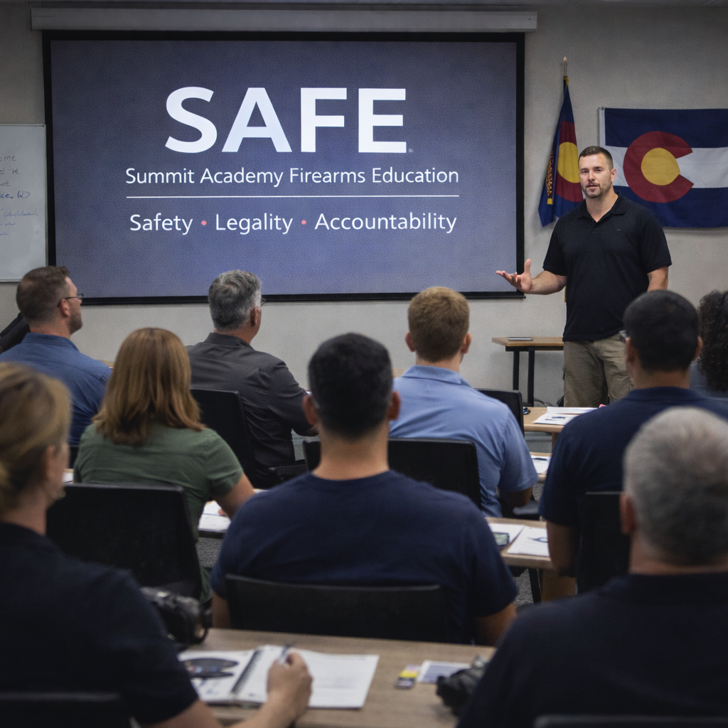 Summit Academy Firearms Education (SAFE) is a Colorado-based firearms training academy committed to structured instruction, responsible ownership, and safety-first leadership. Our mission is to elevate the standard of firearms education through disciplined curriculum and practical skill development.